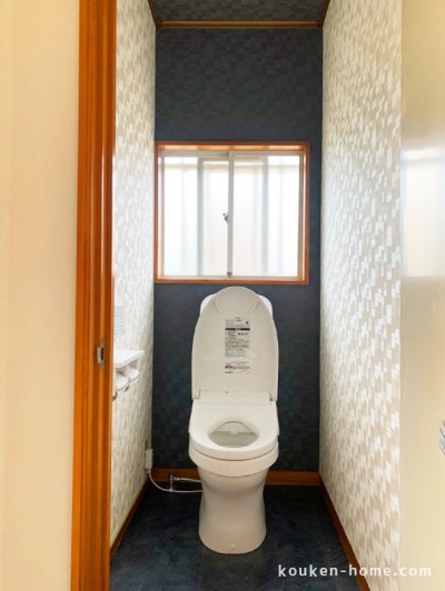 トイレはクロスの全面貼り替えをし、便器交換、照明交換を行いました。