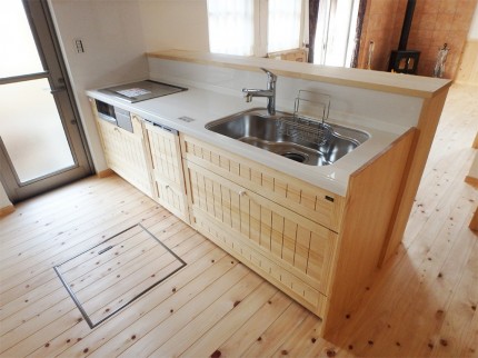 キッチンの造り付収納も、自然素材を使った職人による手造り。
