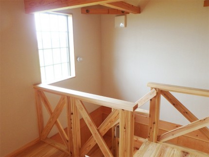 階段の手摺も無垢材で造作しているので、木のぬくもりが感じられます。